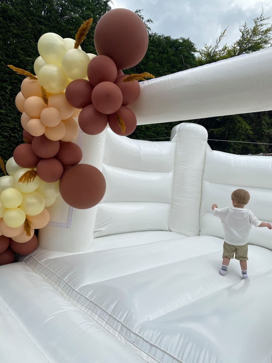 This white bouncy castle is perfect to entertain the children at your special occasion. Designed and manufactured right here in the UK, this inflatable bouncy castle conforms with all of the UK and European safety standards. Built in bright white material, this inflatable is truly stunning and is an indoor alternative to our large white wedding bouncy castle.