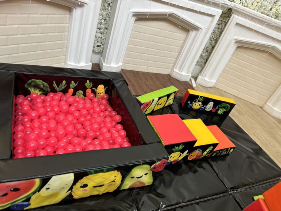 Whether you’re planning a birthday party, a community event, or even a family gathering, the Dancing Fruit Soft Play Set Up is guaranteed to keep the little ones entertained for hours. The set also features a soft play padded foam ball pool, filled with colourful plastic balls to match the theme. The black padded floor mats ensure a cohesive and stylish look that fits seamlessly into any party setting. 🎈🤸‍♂️