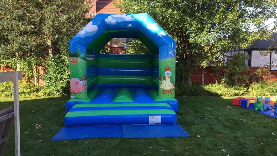 This bouncy castle is styled for children who love animals including farm yard animals.