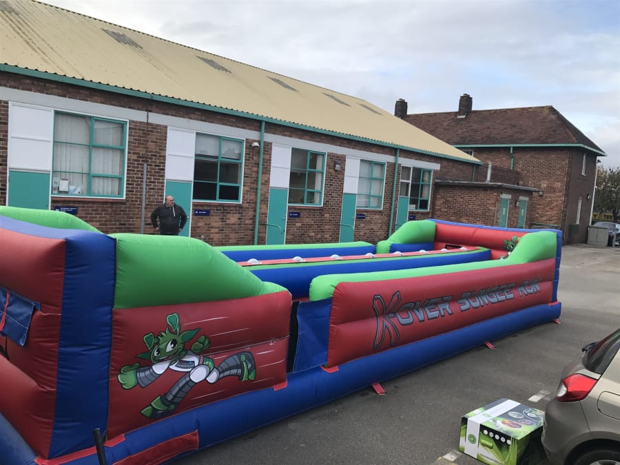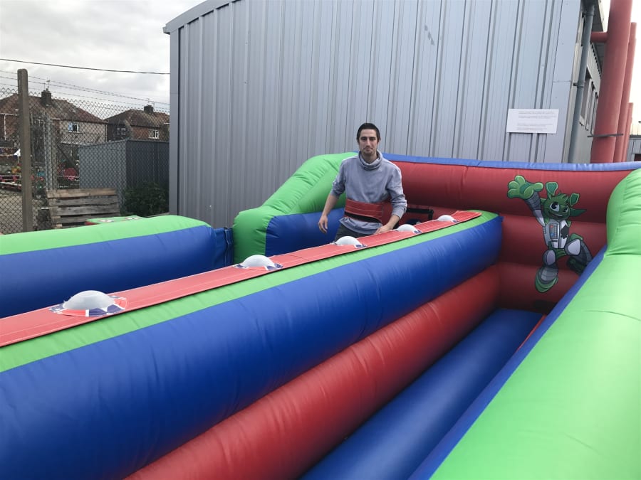 This inflatable features the 'interactive play system' lights and the aim is to move along the bungee run inflatable tapping out your lights as you go along, be quick though and beat your competing user!