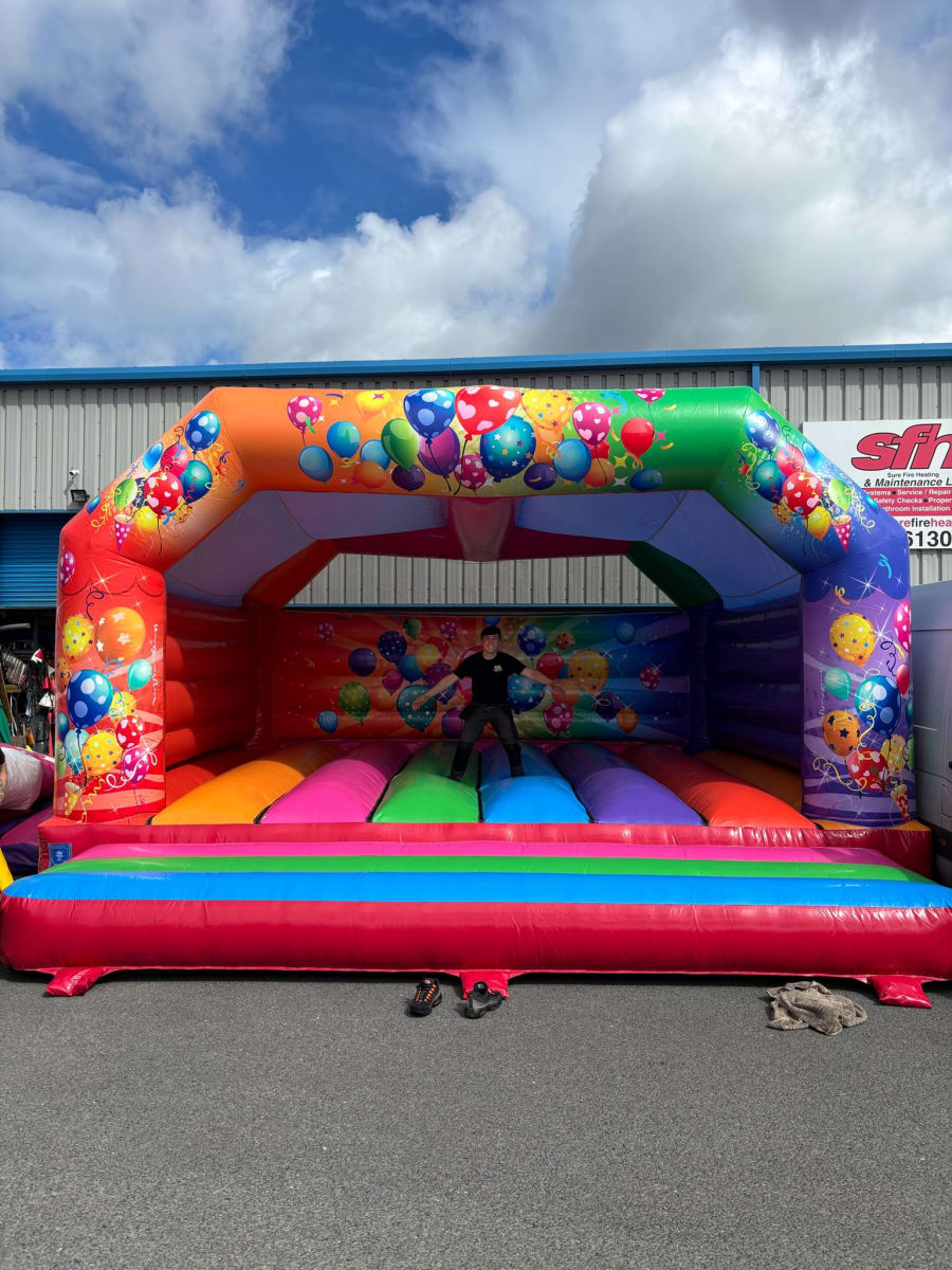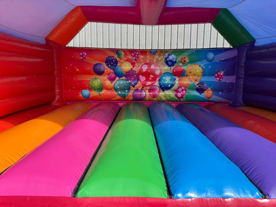 With its bold, colourful design, fun balloon and party graphics, this bouncy castle creates a safe, fun-filled environment for children to jump, bounce and play. It’s the perfect choice for school fun days, community events, large birthday parties, fundraisers, festivals and corporate family fun days.