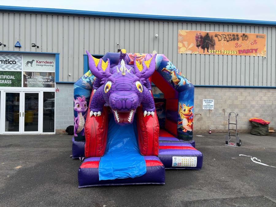 We love this brand-new, dragon-themed bouncy castle and front slide combo! It's in stock, having arrived in Spring 2025, and it looks amazing!