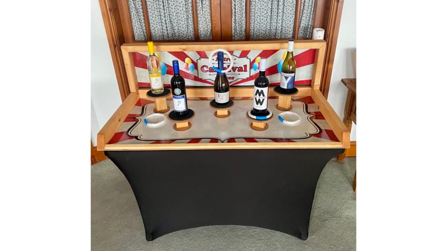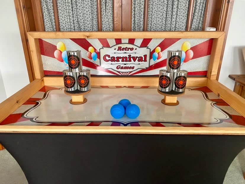 This is a great game board which allows you to play various classic games such as tin can knockdown, ring a bottle, and more.