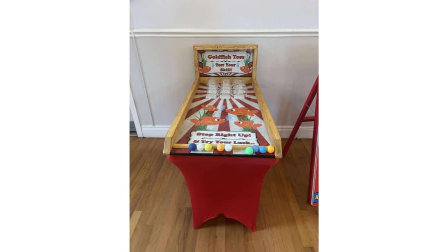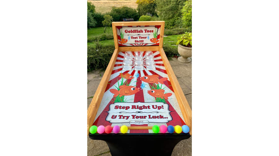 When hiring this fun-filled goldfish toss game, we provide the following as standard;