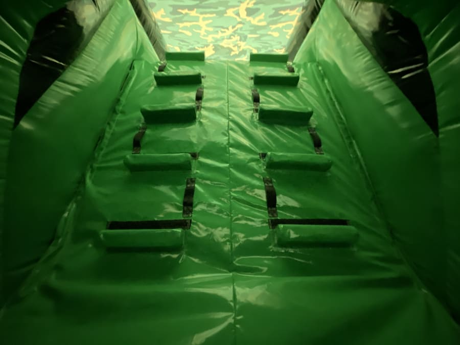 Visually, this is a very striking inflatable with camouflage colouring used on the front facing wall of the first section of the obstacle course, down the side of each section and also on the roof of both sections.