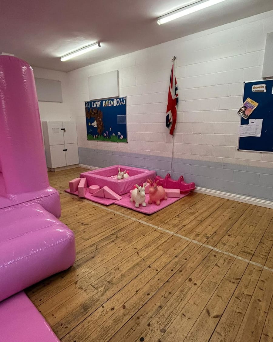 - Pastel Pink Soft Play Set Up - requires space of at least 10ft x 9ft (suitable colour ball pool balls provided)