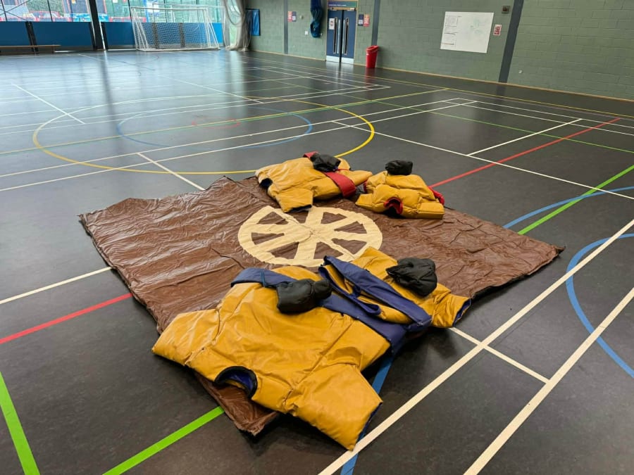 • 2x sets of sumo wrestling suits (4 padded suits in total - 2x small, 2x large)
